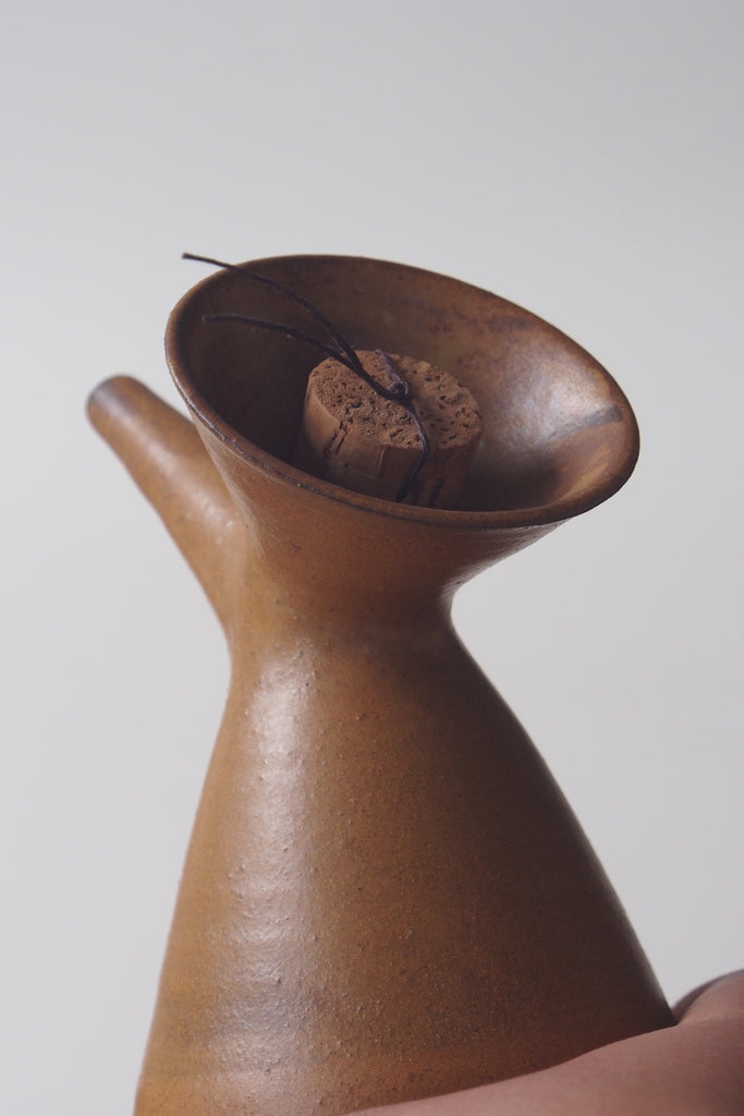 Hand-thrown in three parts then assembled, later fitted with a hand-carved cork by Kura Studio in Perth, WA
