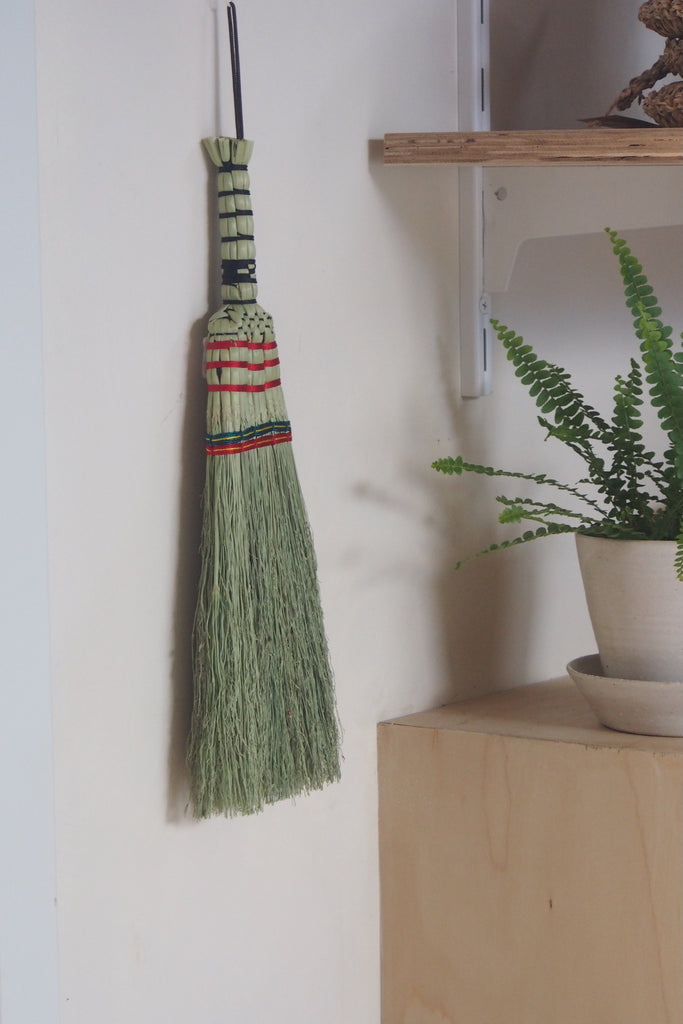This gorgeous mini hand broom is perfect for cleaning table tops, shelves, shoe boxes etc. It come's with a convenient strap, so you can hang it up for display on a hook on the wall.